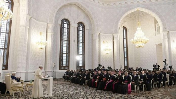 “Fakti që jemi këtu sot, së bashku, është bekim!”, tha Papa, në takimin ndërfetar, ku përveç myslimanëve dhe katolikëve ishin të pranishëm edhe ortodoksët dhe hebrenjtë e vendit. “Është shenjë e madhe, të takohemi në miqësi vëllazërore në këtë vend lutjeje, shenjë që tregon atë harmoni që mund të arrijnë fetë së bashku, duke u nisur nga marrëdhëniet personale dhe nga vullneti i mirë i përgjegjësve”.