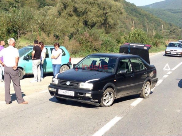 Sipas disa fotografive të dërguara nga një lexues i Indeksonline, njëra nga veturat është me targa të Kumanovës.