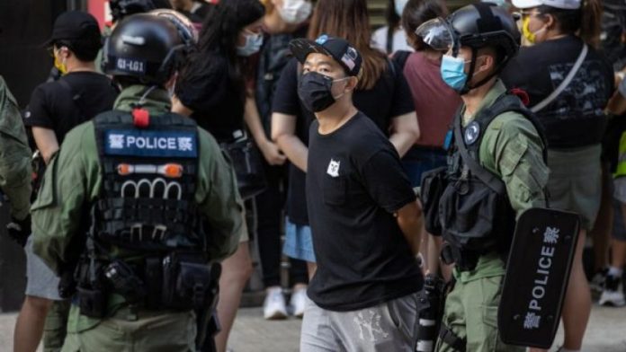 Një grua u arrestua me akuzat e sulmit dhe përhapjen e parullave separatiste. Parullat veçuese janë të ndaluara me ligjin e ri të sigurisë kombëtare të Kinës, raporton CNN.