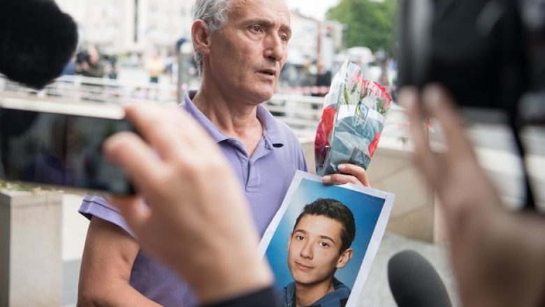 The Guardian publikon fotografitë e babait të Dijamant Zabërgjës, 20 vjeçarit kosovar të vrarë nga sulmi në Munih, babai i të cilit shihet se ka dalë në vendin e ngjarjes, ku iu vra djali nga sulmi terrorist, me fotografinë e Dijamantit.