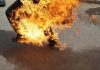 Banorët që me vete mbajn flamuj kuq e zi u nisën nga qendra e fshatit për ta bllokuar rrugën kryesore, por më pas u përballën me një kordon policor.