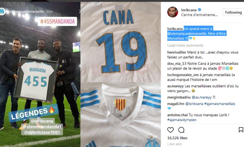 “Një falënderim i madh për Marsejën, krenar që kam qenë marsejez”, shkruan Cana në diçiturën e fotos. Nuk kanë munguar edhe komentet e mjaft tifozëve të Marsejës të cilët e vlerësojnë mjaft figurën e Canës, madje ka dhe nga ata që i thonë se u  mungon.