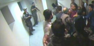 Publikohen pamjet e aksionit kundër puçistëve, në Kullën e kontrollit të...
