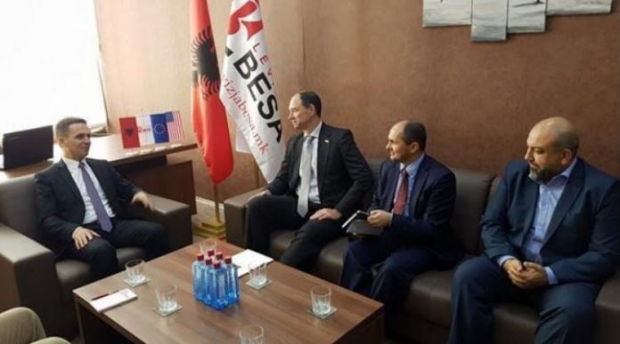 Sot në selinë e Lëvizjes BESA në Shkup qëndroi një delegacion i lartë i SHBA-së në përbërje të David Stephenson – Shef i sektorit politik dhe ekonomik në ambasadën e SHBA-ve, dhe Adrian Ismaili – asistent për çështje në ambasadën e SHBA-ve, ku u pritën nga kryetar i Lëvizjes BESA, Bilall Kasami, Sekretari i përgjithshëm, Afrim Gashi, nënkryetari i Lëvizjes, Zeqirija Ibrahimi dhe anëtari i kryesisë, Kastriot Rexhepi, njofton Telegrafi Maqedoni.