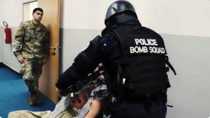 Videoja shfaq pjesëtarët e Policisë së Kosovës, duke demonstruar aftësitë e përdorimit të pajisjeve që përdoren për deminimin e mjeteve të ndryshme shpërthyese.