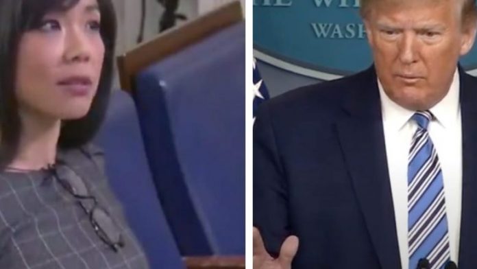 Kur u pyet nga Weijia Jiang se pse nuk i ka informuar qytetarët amerikanë në shkurt për përhapjen e coronavirusit sikur të ishte “vatër zjarri”, Trump i kërkoi fillimisht të di se për cilin medium punon.