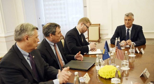 Ky takim i shumicës së liderëve politikë me Drejtorin për Çështje Evropiane në Këshillin e Sigurisë Kombëtare të SHBA-së, John Erath, si dhe me Drejtorin për Ballkan të Këshillit Kombëtar të Sigurisë së SHBA-së, Brad Berkley, ka zgjatur rreth 3 orë në zyrën e presidentit Thaçit.