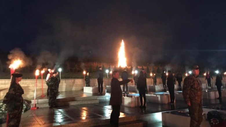 Në mënyrë ceremoniale, pranë varrezave të familjes Jashari në Prekaz u ndezën flakadanët qe simbolizojnë përhapjen e flakës së lirisë në gjithë vendin.