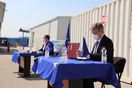 Shefi i EULEX-it, Lars-Gunnar Wigemark, sot i dorëzoi Shërbimit Korrektues të Kosovës një donacion me 50 kompjuterë, 5 laptopë dhe 50 telefona mobil për të ndihmuar në rritjen e qasjes telefonike dhe virtuale për të burgosurit dhe për të lehtësuar takimet virtuale të stafit të shërbimit korrektues.