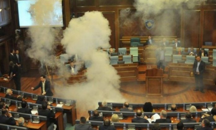 Ndryshe, sipas aktakuzës së 5 janarit 2015, ai dyshohet se më 30 nëntor 2015 në hollin e Kuvendit të Republikës së Kosovës, gjatë një kontrolli nga ana e policisë, tek i pandehuri ishin gjetur dhe sekuestruar dy bombola me gaz lotsjellës, të cilët i kishte fshehur në këpucët e tij, me qëllim që t’i fusë në sallën plenare të Kuvendit të Kosovës.