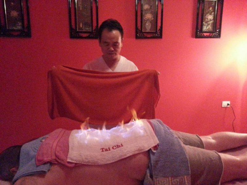 Një majë e hollë gjilpëre në dorën e mjeshtrit kinez bëhet gati. Pas tre sekondash, kur mjeshtri kanë duart e tij katër gjilpëra fillon puna. Së pari, mjeshtri gjen pikat e dobëta mbi shpatullat e pacientit, i sheh ngultaz e nis të “sulmojë”.