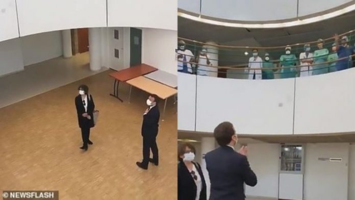 Disa ditë më parë, Elysee shpërndau planet e një takimi të presidentit në Kremlin-Bicetre, ku Macron shfaqej duke duartrokitur punën e stafit mjekësor, në vijë të parë përballë koronavirusit.