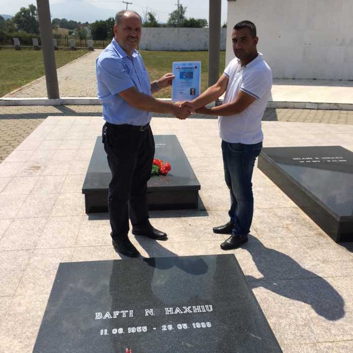 Në fund kryetari z. Haki Latifi i dorëzoj djalit të dëshmorit z. Lul Bafti Haxhiut Mirënjohjen e ndarë ( pas vdekjës) nga Nëndega e LDK-së në Burgdorf/BE në kuadër të 26 vjetorit të kësaj Nëndege në shenjë nderimi dhe respekti për kontributin e të ndjerit në çlirimin e vendit.