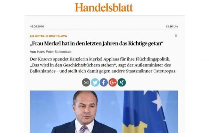 Artikulli fokusohet edhe për takimin e sotëm të kryeministrave të BE-së në Bratisllavë, ku kancelarja Merkel do të kritikohet nga disa vende të Evropës Lindore lidhur me politikën e saj ndaj refugjatëve. Kosova e bën të kundërtën dhe duartroket Gjermaninë për sjelljet e saj për refugjatët.