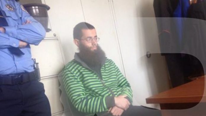 Me pantolla të shkurtër, një bluzë të gjelbër në të zezë, i riu nga rrethina e Opojës, Abdyli, është sjellë në pranga para gjykatësit të procedurës paraprake për t’u njohur me dyshimet për të cilat ai është arrestuar.
