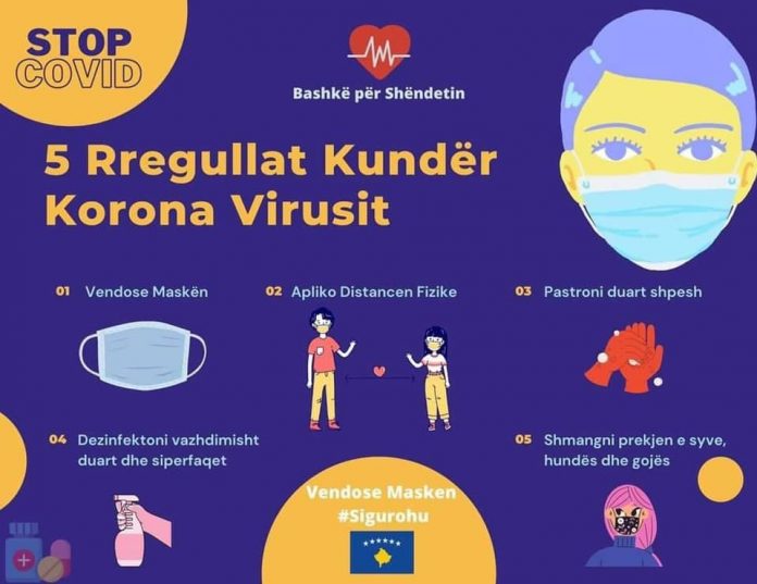 Instituti i Shëndetësisë Publike të Kosovës ka publikuar edhe një ilustrim, në të cilin janë të publikuara pesë rregullat strikte kundër virusit Covid-19.