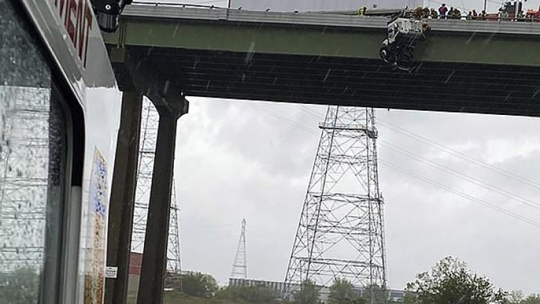 Ekipet e shpëtimit kanë arritur shëndoshë e mirë ta nxjerrin nga kabina e kamionit, shoferin që kishte mbetur i varur në një urë të lartë.
