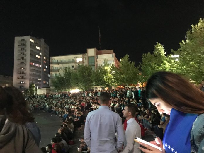 Qindra qytetarë të Prishtinës janë mbledhur në sheshin Zahir Pajaziti për të shikuar ndeshjen Angli – Kosovë.