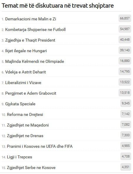 Sipas hulumtimit, del se temat më të kërkuara kanë të bëjnë me politikën, ndërsa Demarkacioni me Malin e Zi ka dominuar në këtë aspekt.