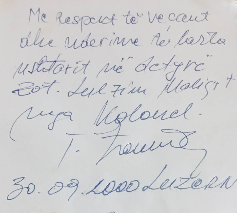 Jam shumë i nderum që një komandant siqë ishte Kolonel Tahir Zemaj më vlerësoj dhe më respektoj për angazhimin tim, këtë mirënjohje që ma dedikuat mua do ta ruaj deri sa të jem gjallë.
