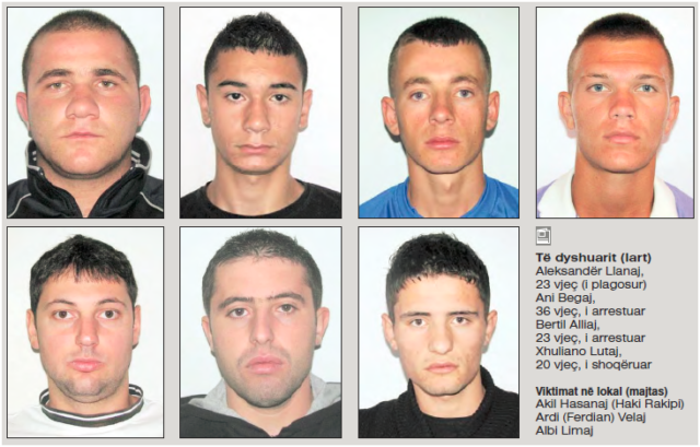 Albi Limaj dhe Ardi Velaj takohen me njëri-tjetrin dhe i mbanin duart brenda zinxhirit të xhupave, ku dhe kishin pretendohet se kishin fshehur armët. Në këto momente Aleksandër Llanaj qëllon me armë, duke mos i dhënë kohë njëri-tjetrit për qetësimin e situatës. Fillimisht ai qëllon mbi Ardi Velajn, duke ia marrë jetën me një plumb të vetëm në kokë. Në dosje thuhet se pas kësaj, Haki Rakipi ka nxjerrë pistoletën dhe ka qëlluar në drejtim të Llanajt 8 herë, duke i shkaktuar disa plagë. I plagosur nga kjo përleshje ka mbetur edhe Albi Limaj, ku thuhet se atentatori ka qenë sërish Llanaj. Haki Rakipi vazhdon që të qëllojë me armë, ndonëse i plagosur. Kur Llanaj e plagos për herë të dytë në pjesën e djathtë të kokës, Haki Rakipi vdes. Ndërkohë, Albi Lamaj ka mbetur i plagosur dhe ka tentuar që të largohet në një nga daljet e lokalit, sepse ai ka dy të tilla. Llanaj është larguar nga dera tjetër. Gjithçka ndodhi në 11 sekonda.