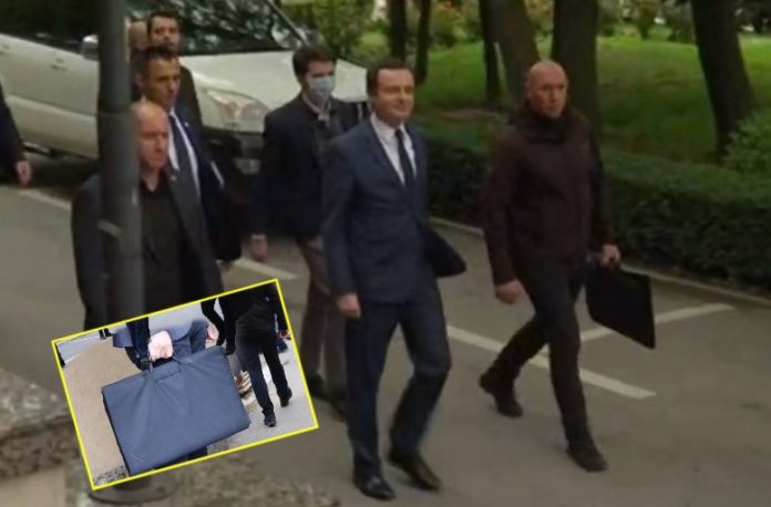 Gjatë shkuarjes në Komunë është vërejtur se pjesëtarët e sigurimit të kryeministrit në detyrë, tani me vete po bartin çanta të zeza të cilat shndërrohen në antiplumb.