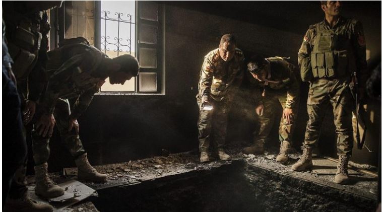 Kjo është ajo që ka mbetur pas në ndërtesa në periferi të Mosulit të cilat vetëm pak ditë më parë ishin të banuara nga militantë të “Shtetit Islamik”.