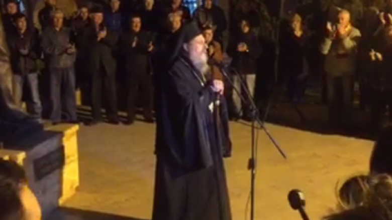 “Duhet të bëjmë regjistrimin dhe të numrërohemi, dhe kështu do të shohim se ata që kërkojnë dygjuhësi dhe kantonizim nuk janë as 15%. Për këtë arsye duhet të mblidhemi dhe përmendores së Koço Racin dhe t’ju bëjmë thirrje partive më të mëdha maqedonase të ulen në tryezë dhe t’i zgjedhin mosmarrëveshjet mes tyre, nëse dëshirojnë edhe të rrahen, por të dalin me një qëndrim të përbashkët se nuk duan ta ndajnë Maqedoninë”, porositi prifti Agatangel.