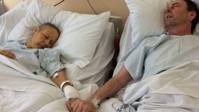 Ky është momenti prekës kur dy prindër me sëmundje vdekjeprurëse shtrëngojnë duart e njëri-tjetrit si për lamtumirën e fundit.