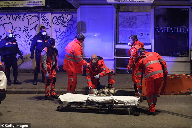 Ndërkohë, disa pamje të bëra publike tregojnë një burrë të shtrirë përtokë pa ndenja. Ai mbante një maskë mbrojtëse në fytyrë dhe ishte në tokë pranë një stacioni autobusi në Romë të Italisë.