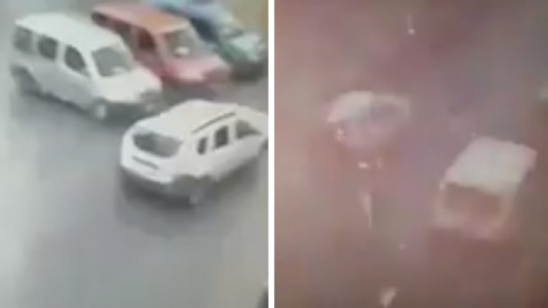 Në video shihet një rrugë në të cilën kalojnë vetura, ku pas disa sekondave ndodh shpërthimi dhe e gjithë zona përfshihet nga flaka.