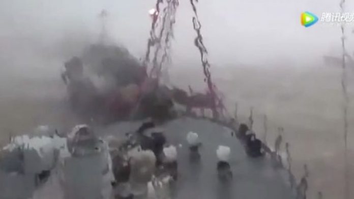 Videoja e publikuar më poshtë, shfaq momentin kur anija gjigante që përdoret për peshkim po lundronte në ujërat e Kinës, kur befasisht para saj u shfaq luftanija, transmeton Telegrafi.