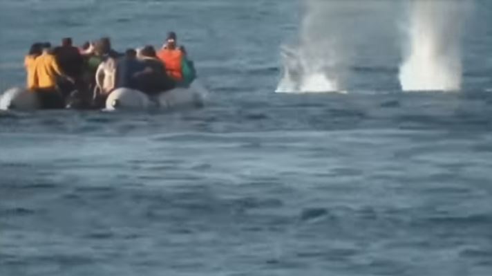 Ato tregojnë pamjet se si një oficer grek të rojës bregdetare, i veshur me të zeza, ndërsa bën dy të shtëna nga një pushkë automatike në ujë, afër një varke të mbushur me azilkërkues.