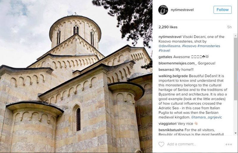 E përditshmja më e madhe në botë, New York Times, në llogarinë e saj në rrjetin social Instagram, ka ftuar vizitorët nga e gjithë bota që ta vizitojnë Kosovën.