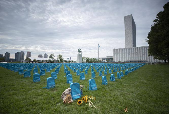 Fondi për Fëmijë i Kombeve të Bashkuara (UNICEF) ka improvizuar një varrezë para selisë së OKB-së në New York me 3.758 çanta shkolle për çdo fëmijë të vdekur si pasojë e konflikteve dhe luftërave vitin e kaluar, me qëllim tërheqjen e vëmendjes së liderëve botërorë..