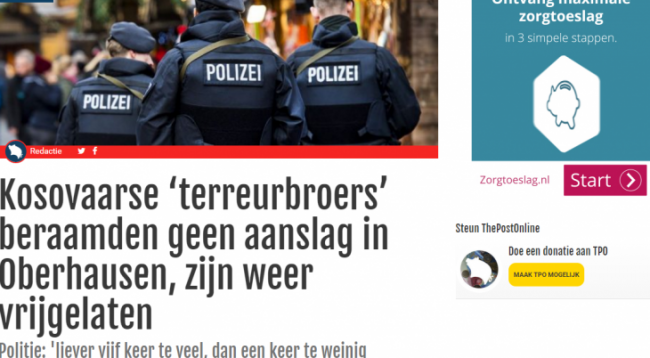 Ndërsa mediumi holandez “The Post Online” shkruan se “‘Vëllezërit terrorist’ kosovarë që planifikonin sulm në Oberhausen, janë liruar”.