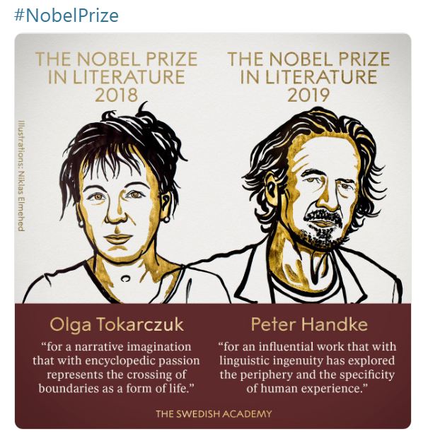 Autorja polake Olga Tokarczuk është fituese e Çmimim Nobel të Letërsisë për vitin 2018, ndërsa austriaku Peter Handke është fitues i Nobelit për Letërsi për vitin 2019, transmeton ObserverKult.