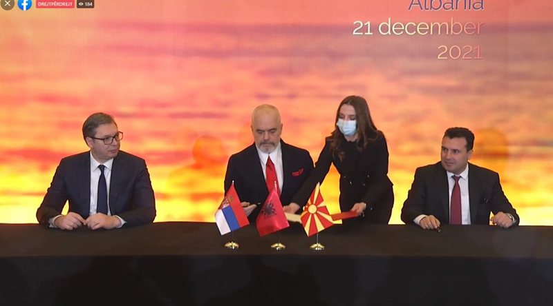 Në kuadër të takimit për nismën ‘Open Balkan’ kryeministri Edi Rama, presidenti i Serbisë, Aleksandër Vuçiç dhe kryeministrit të Maqedonisë së Veriut, Zoran Zaev kanë firmosur 5 marrëveshje bashkëpunimi. Tre liderët kanë parë nga afër procedurat ku ministrat e tyre përkatës kanë firmosur marrëveshjet, të cilat janë pritur me duartoktitje nga të pranishmit.
