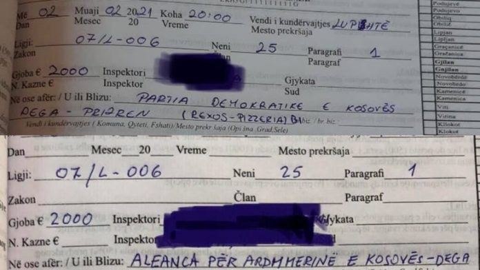 Së fundmi nga Inspektorati i Komunës së Prizrenit, janë gjobitur me nga 2 mijë euro, Partia Demokratike e Kosovës dhe Aleanca për Ardhmërinë e Kosovës.
