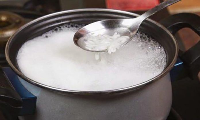 Ndalon diarrenë: mineralet e gjendura në oriz trajtojnë simptomat e diarresë. Në një gotë me ujë orizi shtoni një majë luge kripë dhe pijeni 2 herë në ditë.