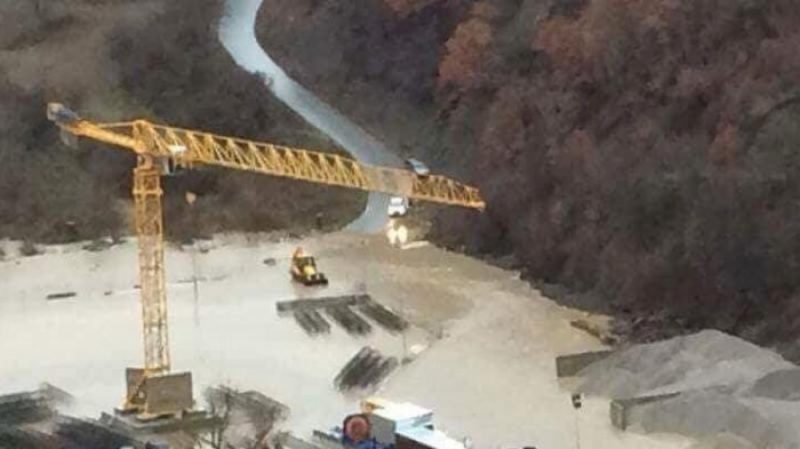 Në disa foto të Indeksonline shihen pajisjet e automjetet e kompanisë që po ndërton autostradën, Bechtel-Enka që janë të mbuluara nga uji.