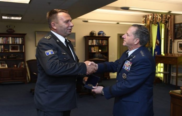 Komandanti i FSK-së Rrahman Rama në emër të Presidentit Hashim Thaçi dekoroi me “Urdhrin e Lirisë” shefin e shtabit të Forcave Ajrore të ShBA-së David Goldfein.