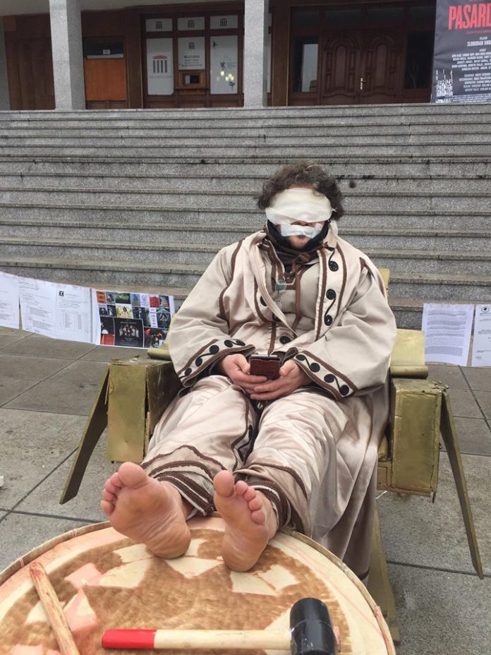 Grevisti Sokol Plakolli, do të qëndrojë i ulur në karrigen e vendosur para Teatrit Kombëtar, pa ushqim, pa pije, i zbathur, me gojë dhe me sy të mbyllur, por ka të drejtë të komunikojë me të tjerët.