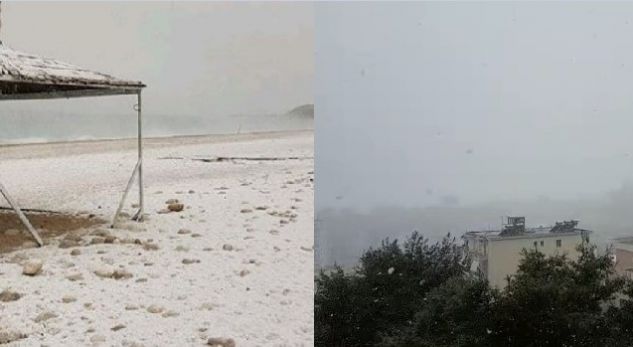 Këtë të premte dëbora ka zbardhur thuajse të gjithë vendin, por edhe zona të plazhit shqiptar në jug, siç është dhe rasti me Dhërmiun.