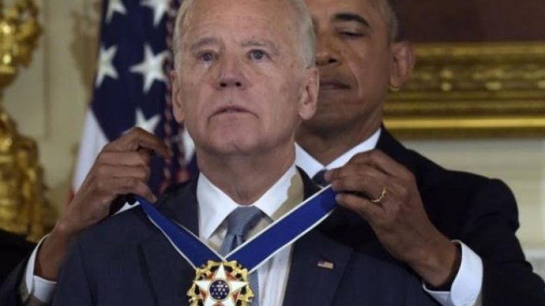 Presidenti i Shteteve të Bashkuara të Amerikës, Barack Obama gjatë një konference zyrtare në Shtëpinë e Bardhë i ka dhuruar zëvendëspresidentin, Joe Biden, Medaljen Presidenciale të Lirisë.