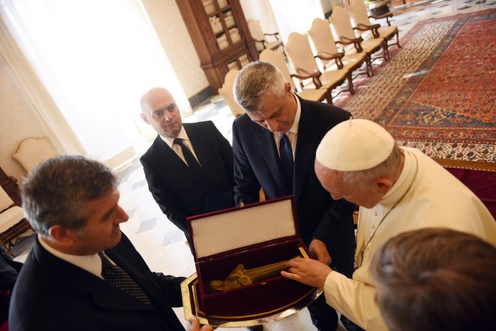 Presidenti i Republikës së Kosovës, Hashim Thaçi, në një audiencë private është pritur sot nga Ati i Shenjtë, Papa Françesku, në Selinë e Shenjtë në Vatikan.