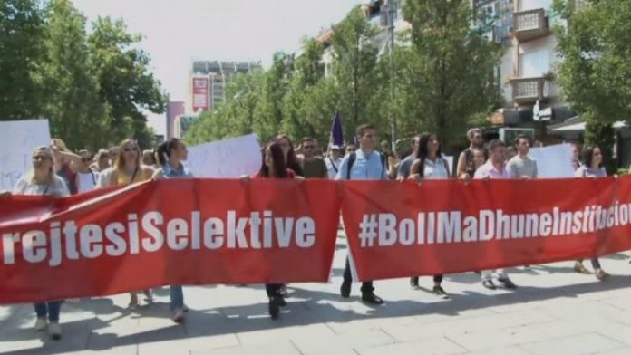 Marshi protestues po vazhdon drejt ndërtesës së Policisë.
