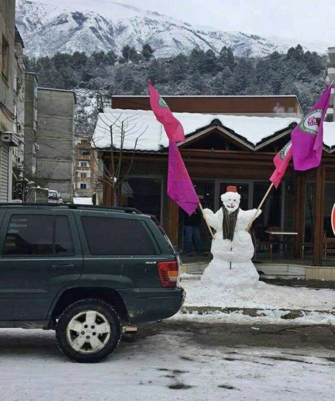 Disa qytetarë që mund të jenë edhe aktivistë të PS-së dhe LSI-së kanë vendosur, ta përshkruajnë koalicionin mes dy forcave qeverisëse, si një plak dëbore.