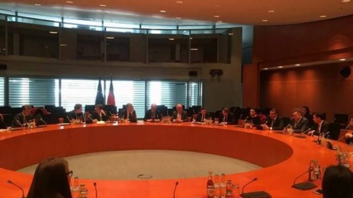 Në pjesën e pasdites, delegacioni kosovar ka zhvilluar një takim me këshilltarin për Çështje të Huaja dhe të Sigurisë në Kancelarinë Federale, Mr. Christoph Heusgen dhe këshilltarin e kancelares Merkel për Politikë të Jashtme, Matthias Luttenberg, në ambientet e Kancelarisë Federale.