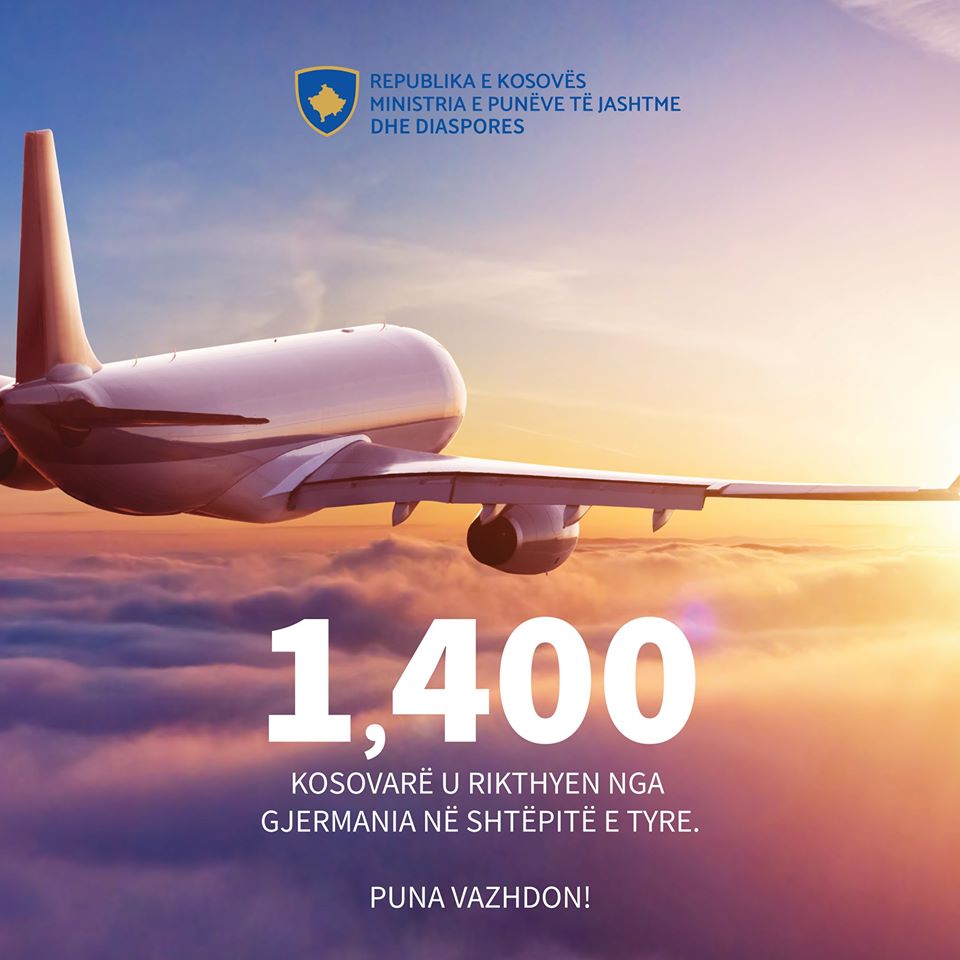 “Kosova rikthen qytetarët e saj nga Gjermania. Më shumë se 1.400 kosovarë u rikthyen në shtëpitë e tyre që nga shfaqja e pandemisë Covid-19. Faleminderit Ambasadës së Kosovës në Gjermani, Institucioneve të vendit dhe autoriteteve gjermane. Puna vazhdon”, ka shkruar ministrja.